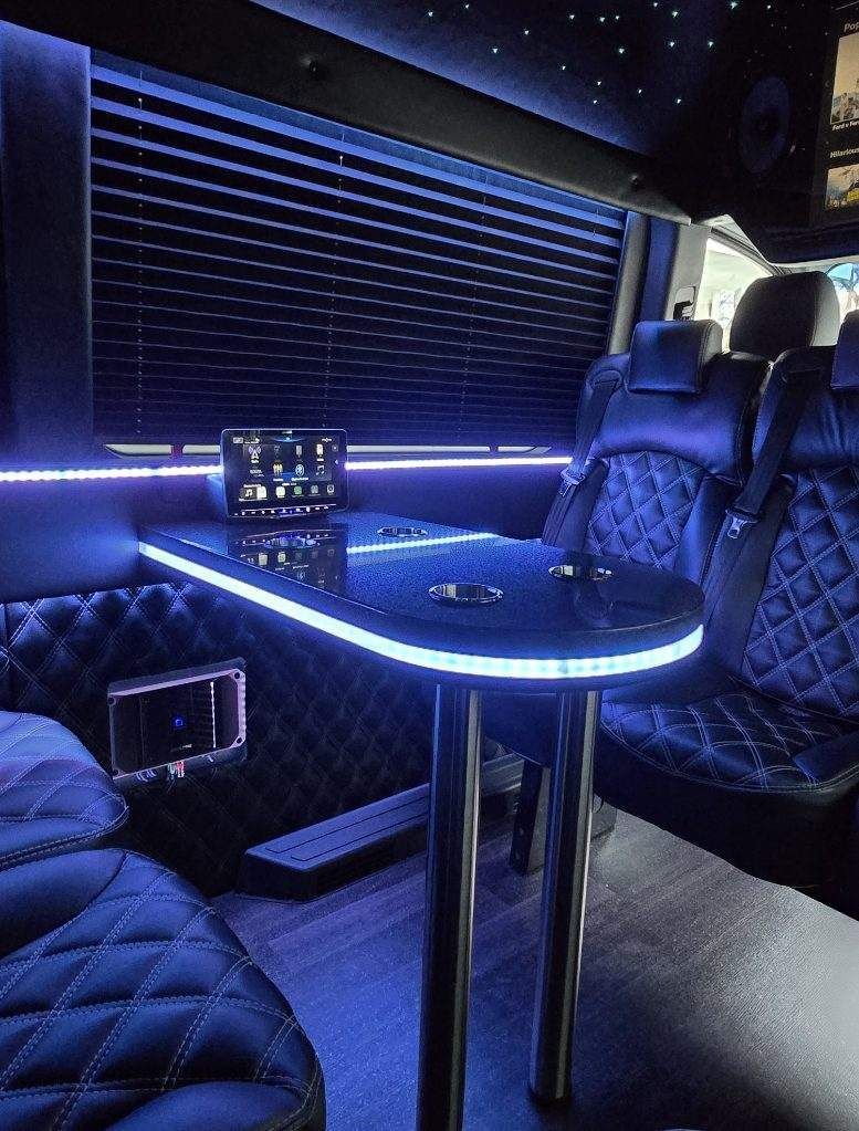 Features high-quality sound systems, party lighting, and often flat-screen TVs to keep the energy high.